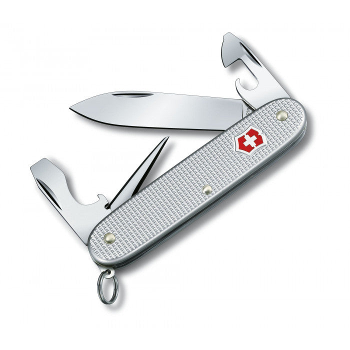 La compañera compacta para sus aventuras al aire libre Navaja de bolsillo hecha en Suiza con 8 funciones y cachas Alox de alta calidad Incluye punzón escariador y abrelatas